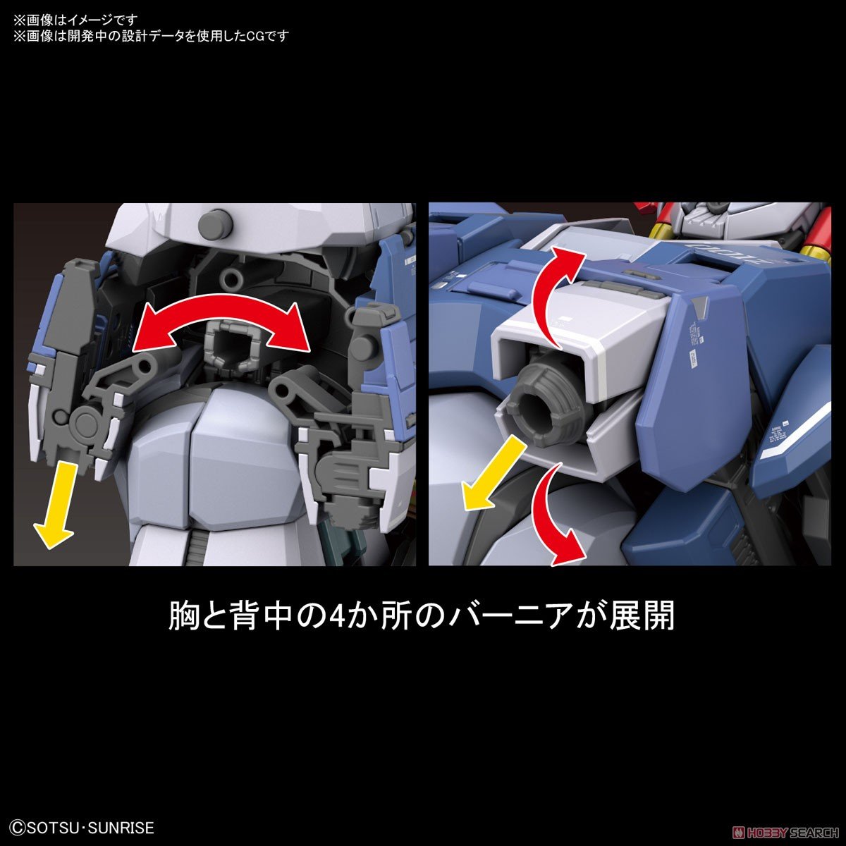 ■胸部の前後可動に連動し胸と背中の4か所のバーニアが展開。