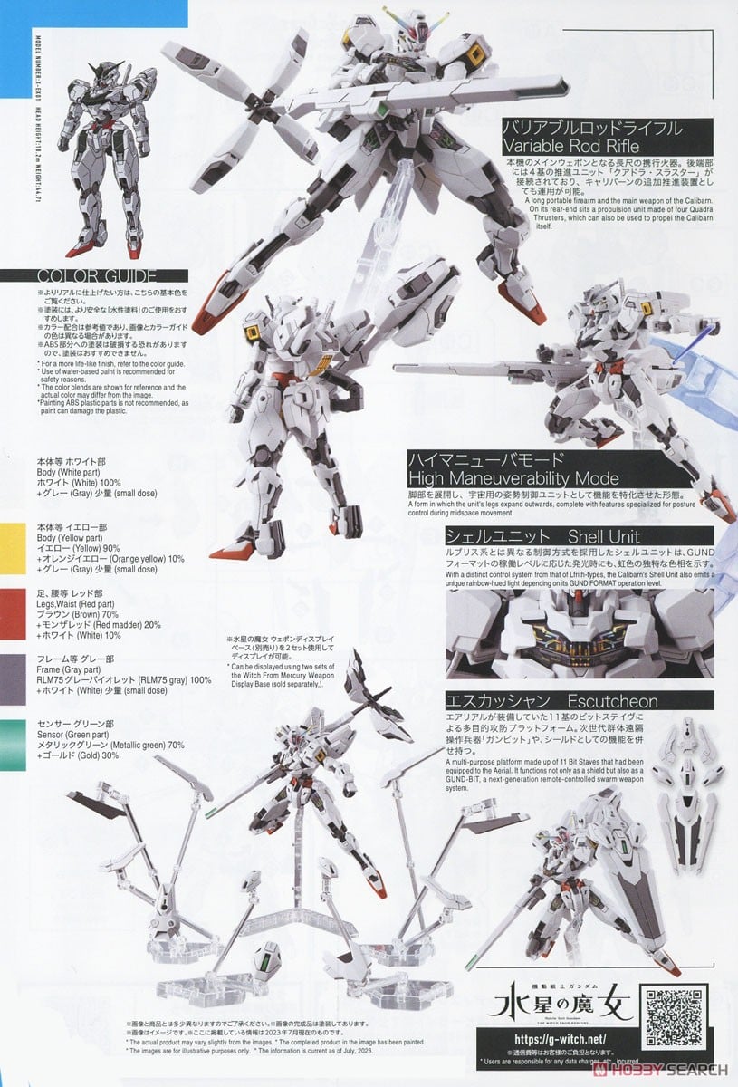 「機動戦士ガンダム 水星の魔女」より、2023年7月初販の【HG ハイグレード】「HG 1/144 ガンダムキャリバーン」が、バンダイ スピリッツから再販♪